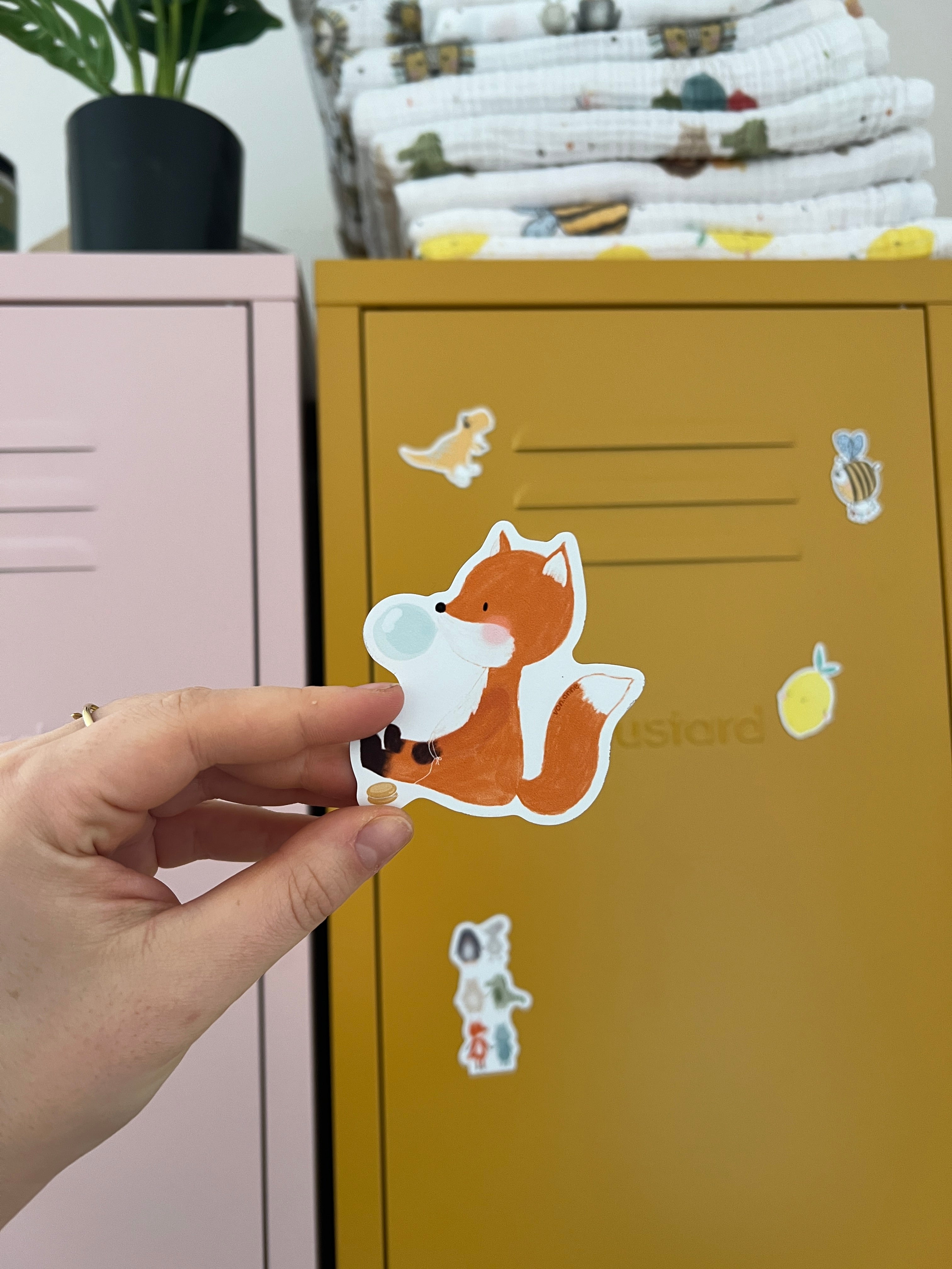 - Hintere Folie vom Sticker abziehen, sodass das Motiv zu dir zeigt.