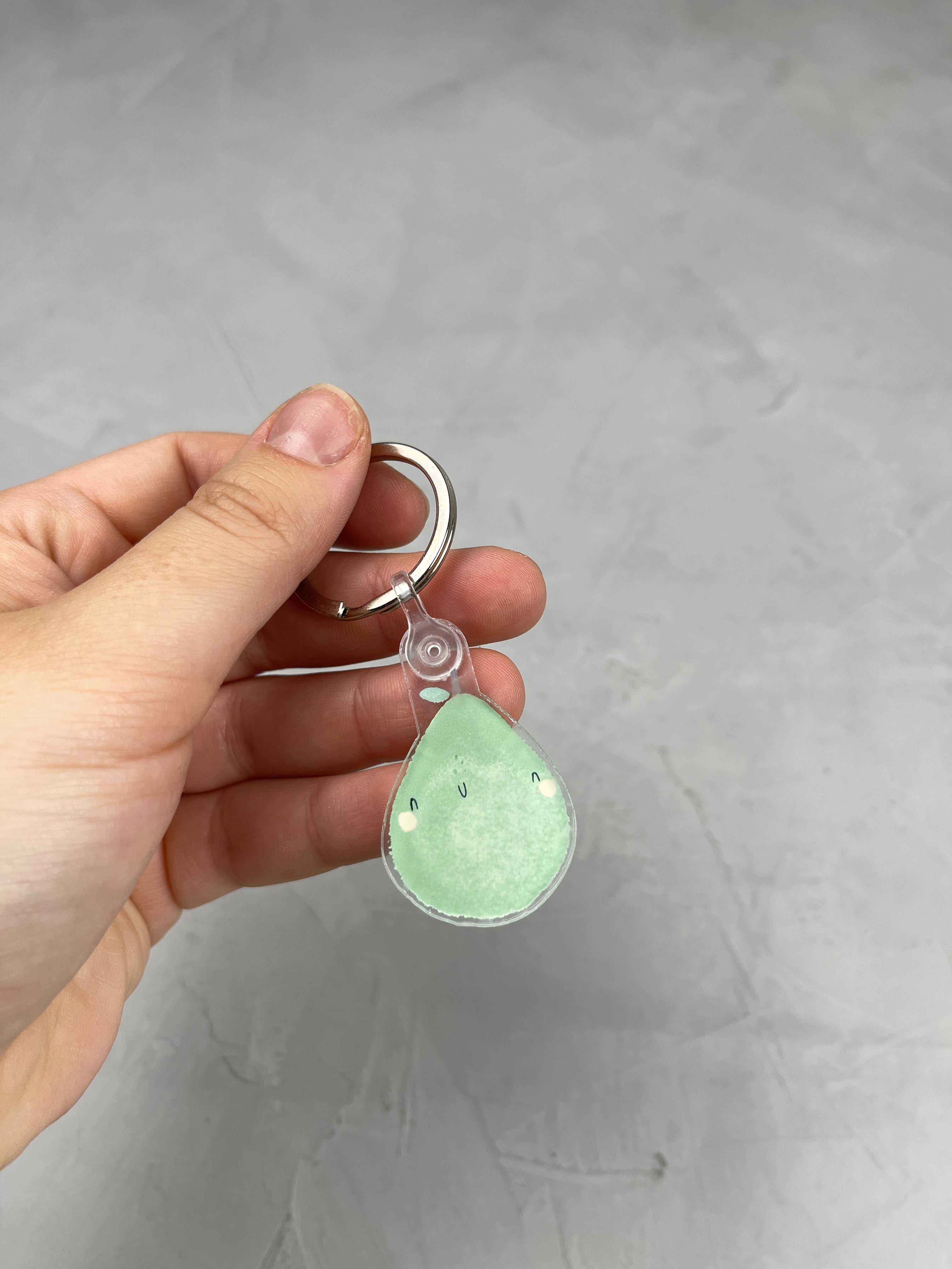 Transparenter Anhänger, bedruckte Rückseite, durchsichtiger Verschluss und stabiler Schlüsselring.