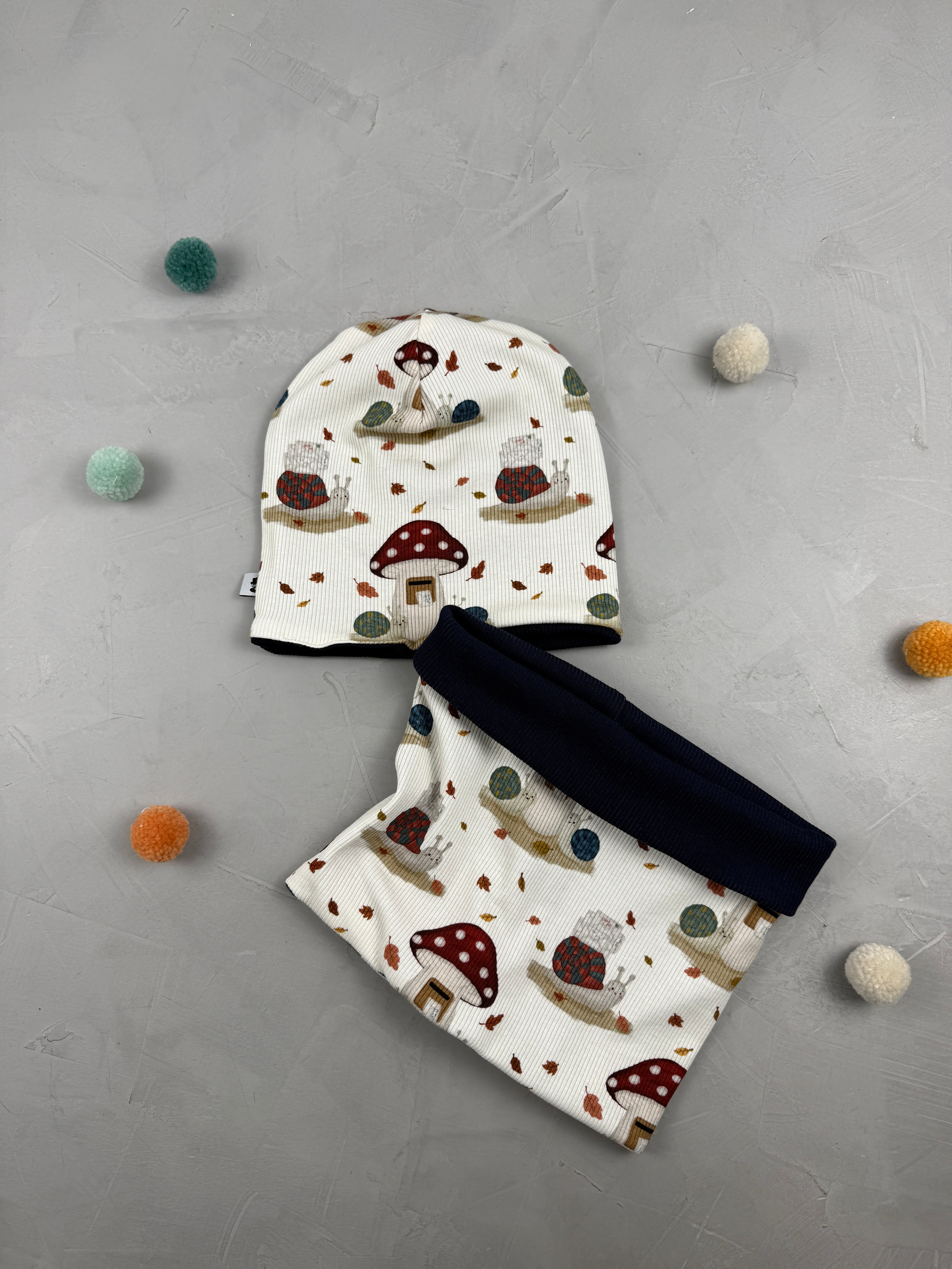 Beanie/Loop-Set - Schneckenpost/Dunkelblau