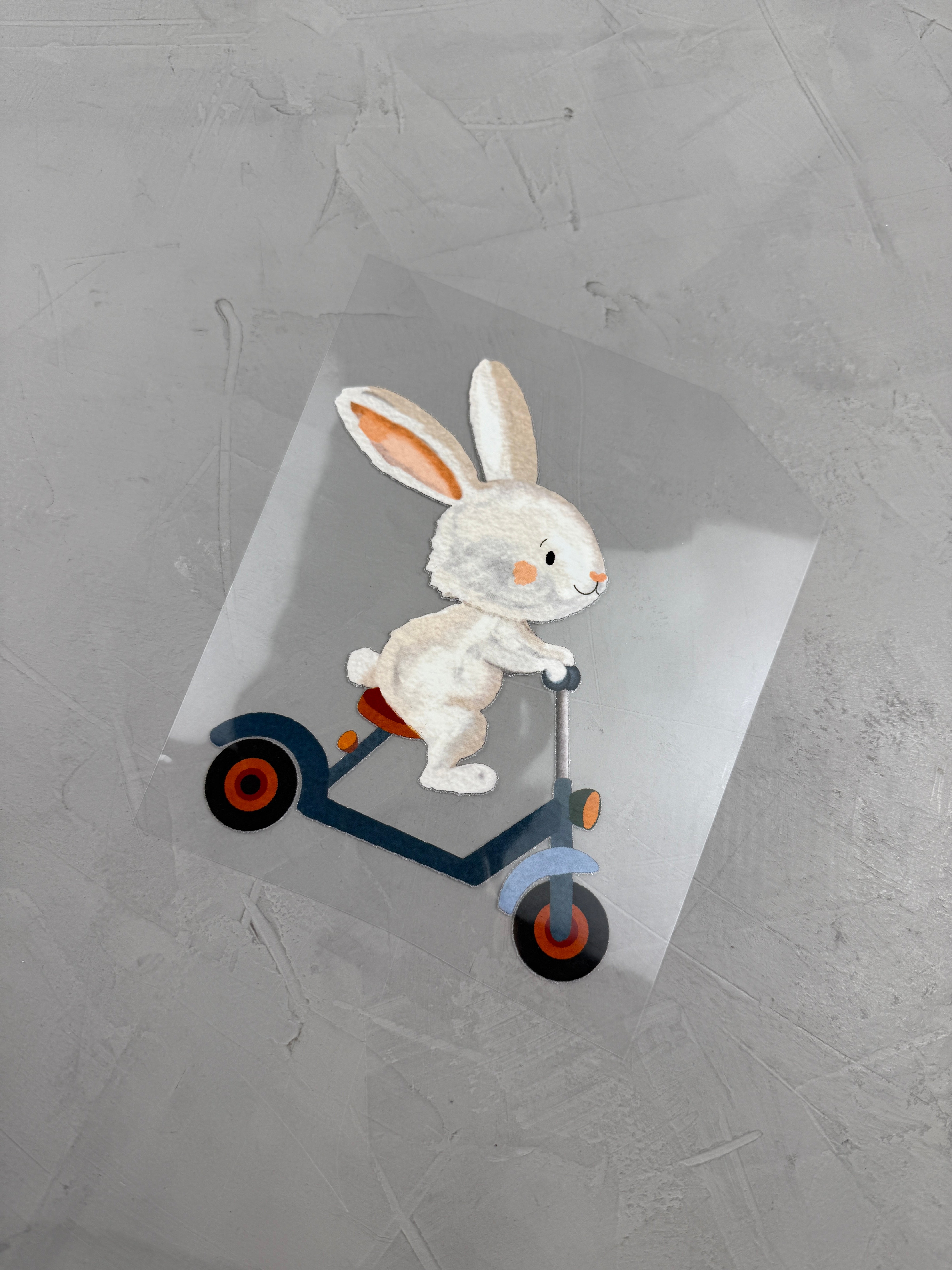 - Hintere Folie vom Sticker abziehen, sodass das Motiv zu dir zeigt.