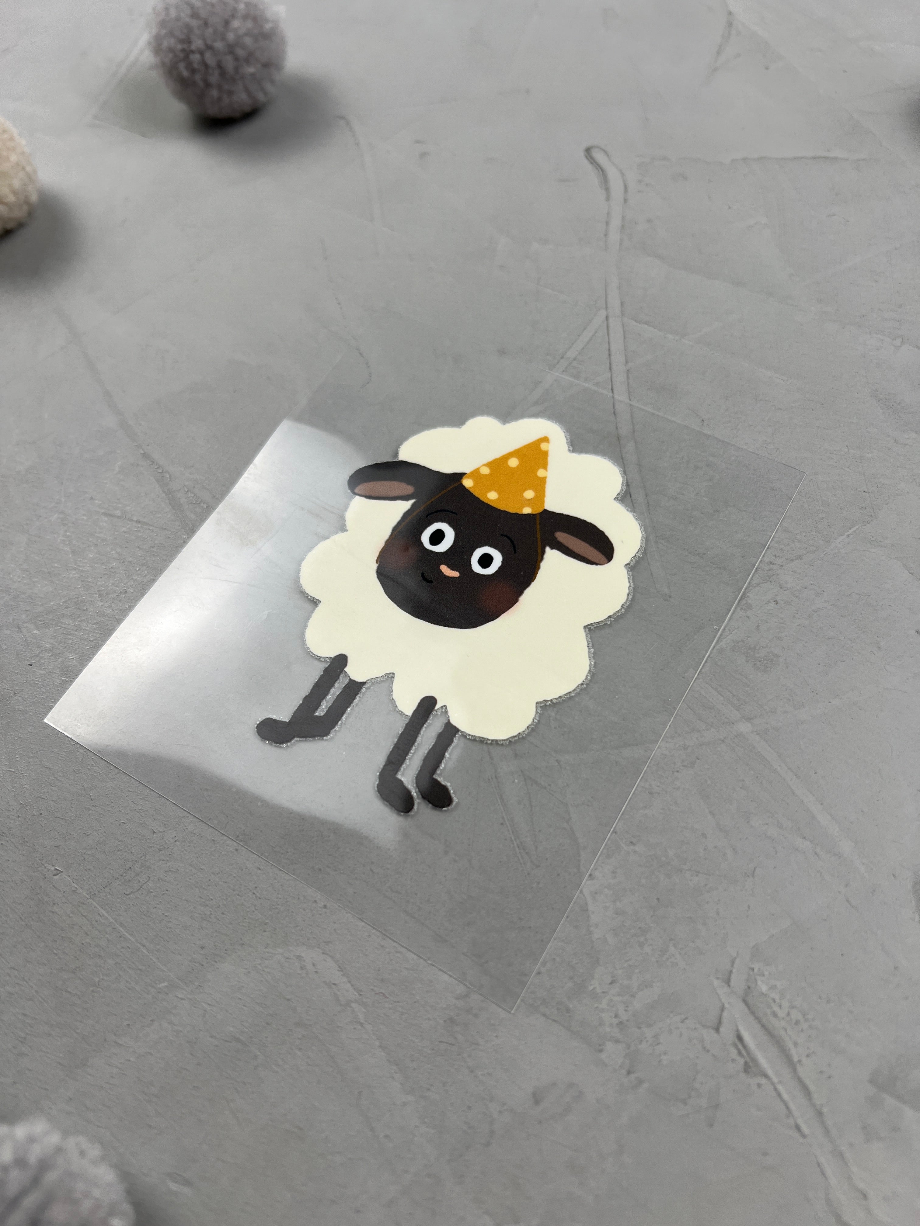 - Hintere Folie vom Sticker abziehen, sodass das Motiv zu dir zeigt.