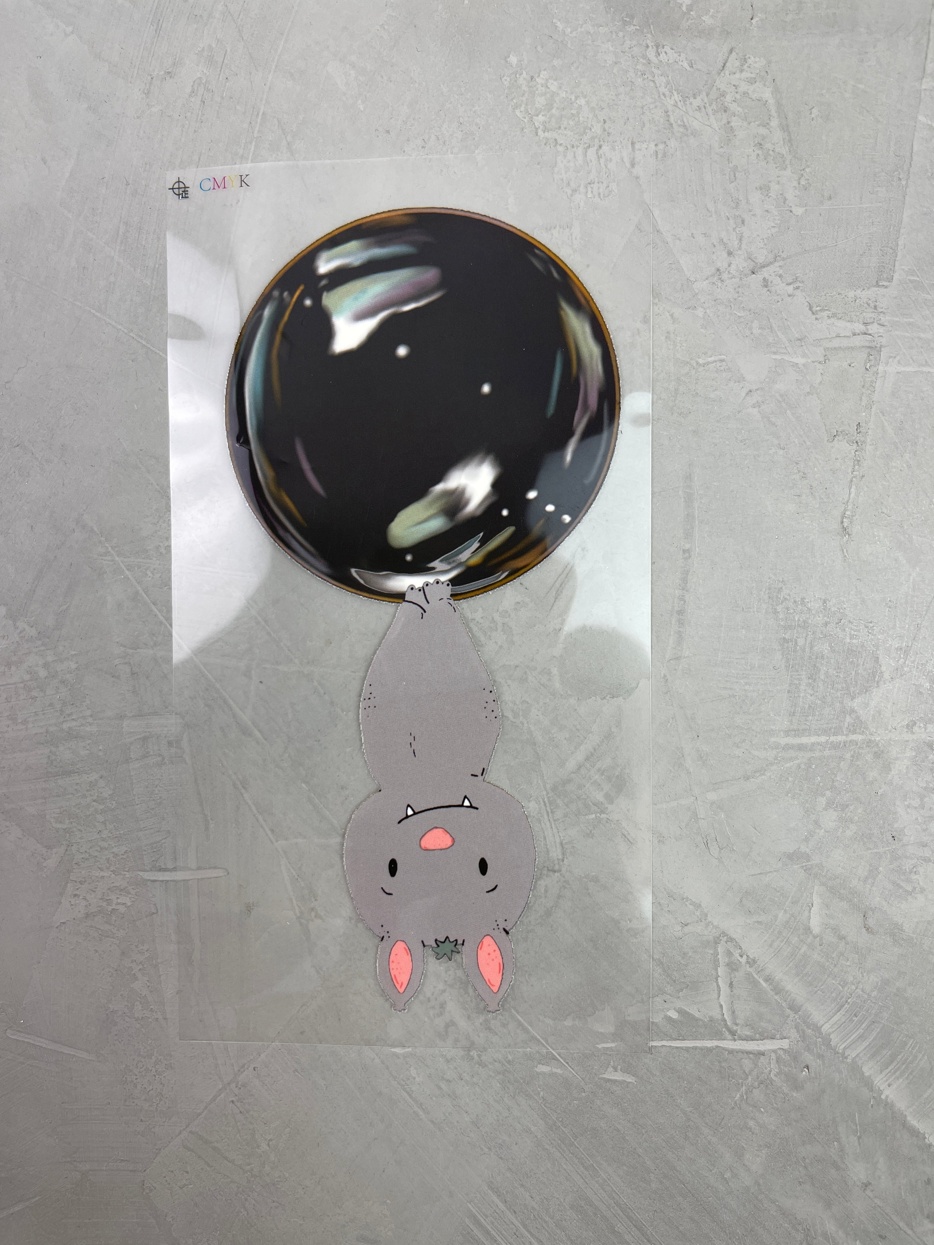 - Hintere Folie vom Sticker abziehen, sodass das Motiv zu dir zeigt.