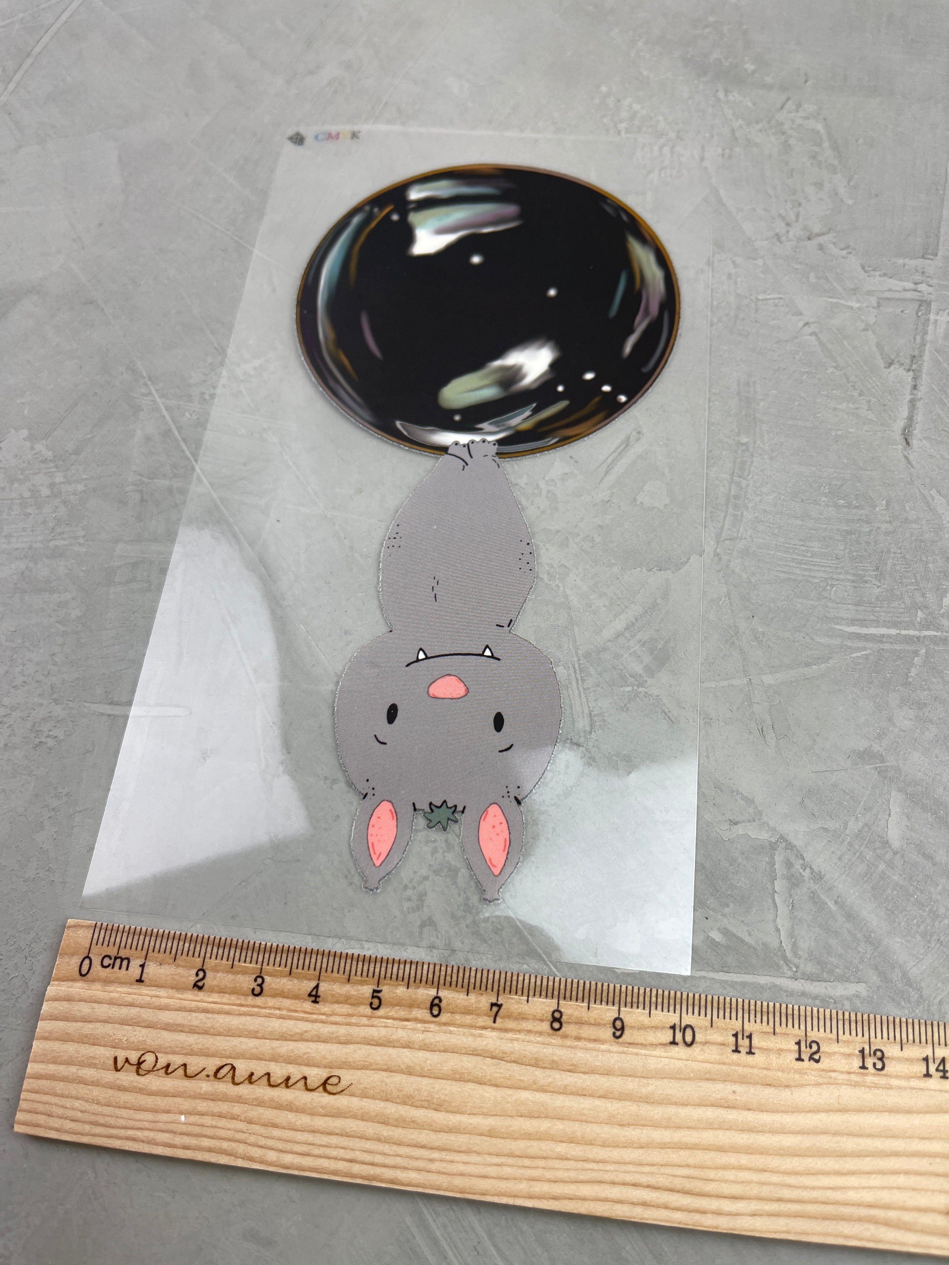 6. Backpapier anheben und alles leicht abkühlen lassen. Die Trägerfolie sollte leicht ablösbar sein, falls sie zu viel am Motiv haftet nochmals für 30 Sekunden drüber bügeln