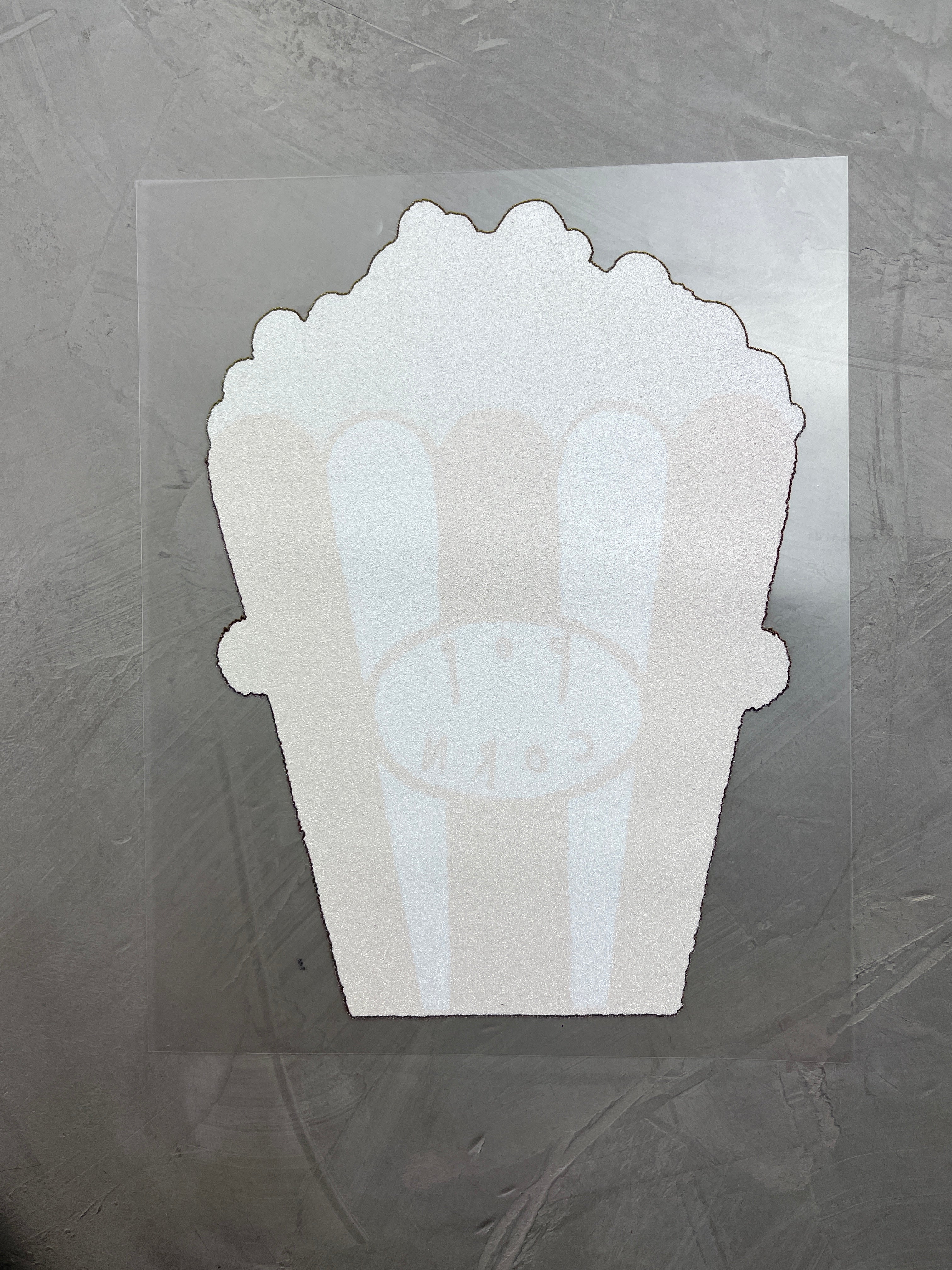 6. Backpapier anheben und alles leicht abkühlen lassen. Die Trägerfolie sollte leicht ablösbar sein, falls sie zu viel am Motiv haftet nochmals für 30 Sekunden drüber bügeln