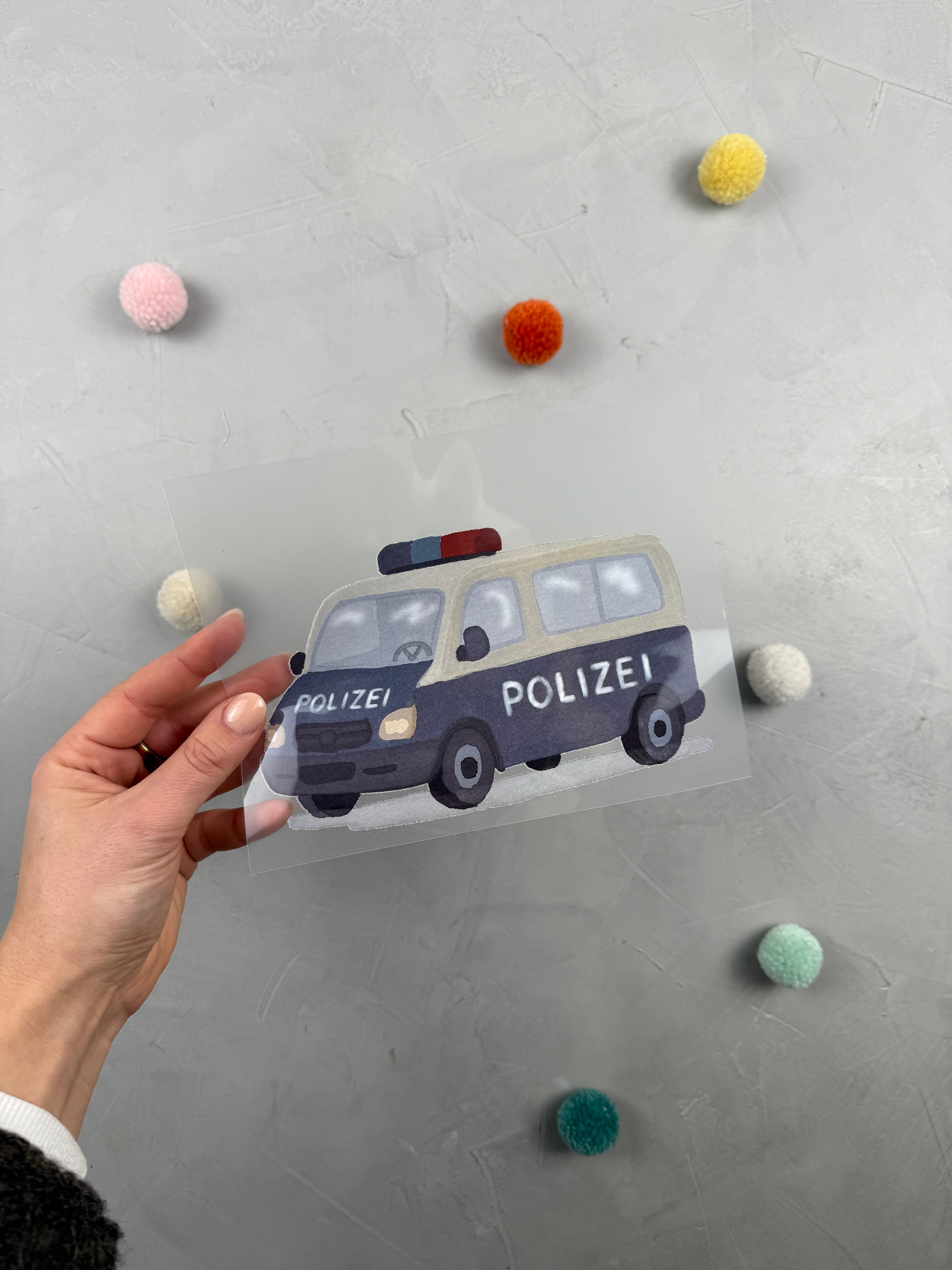 - Hintere Folie vom Sticker abziehen, sodass das Motiv zu dir zeigt.