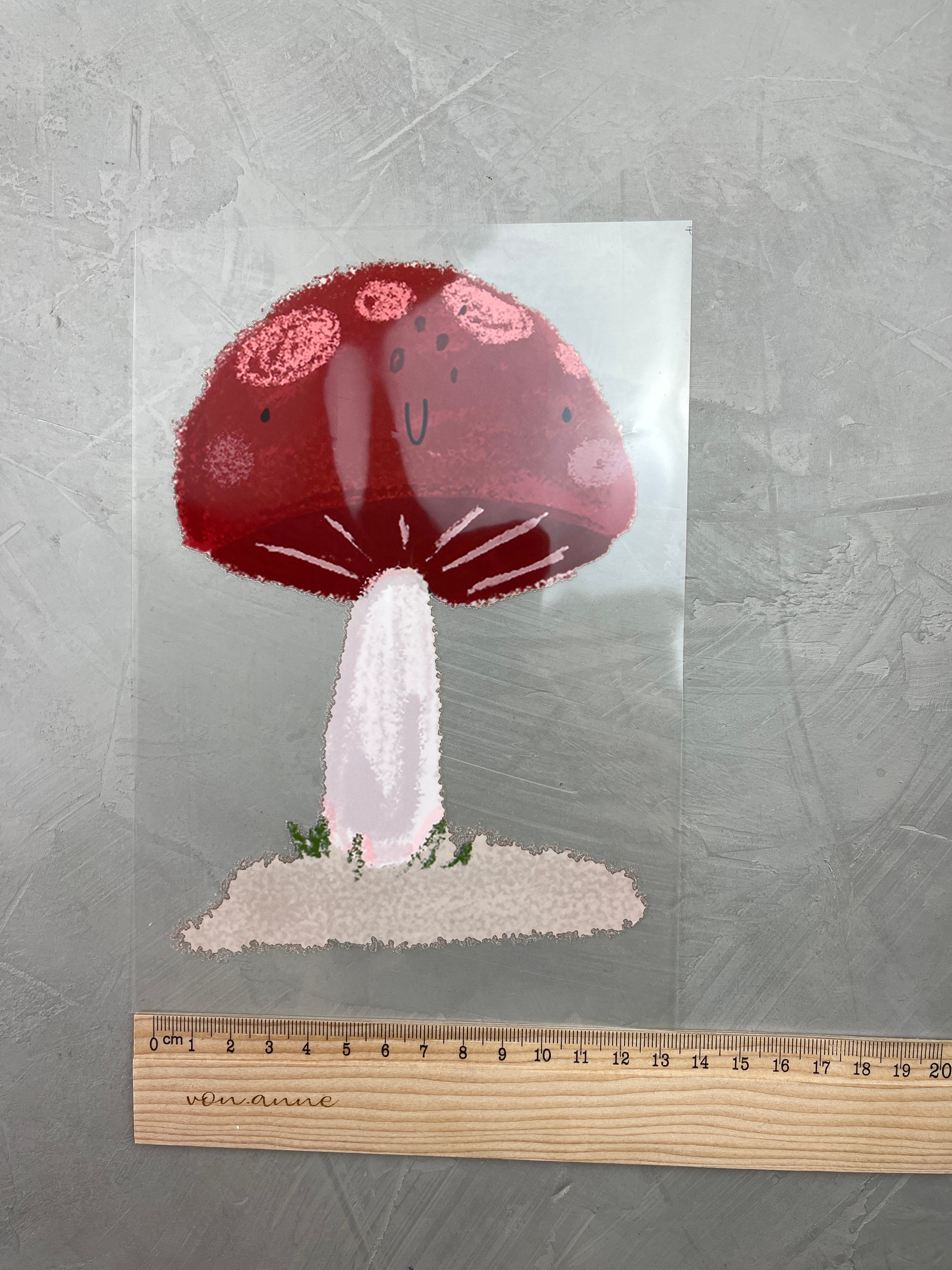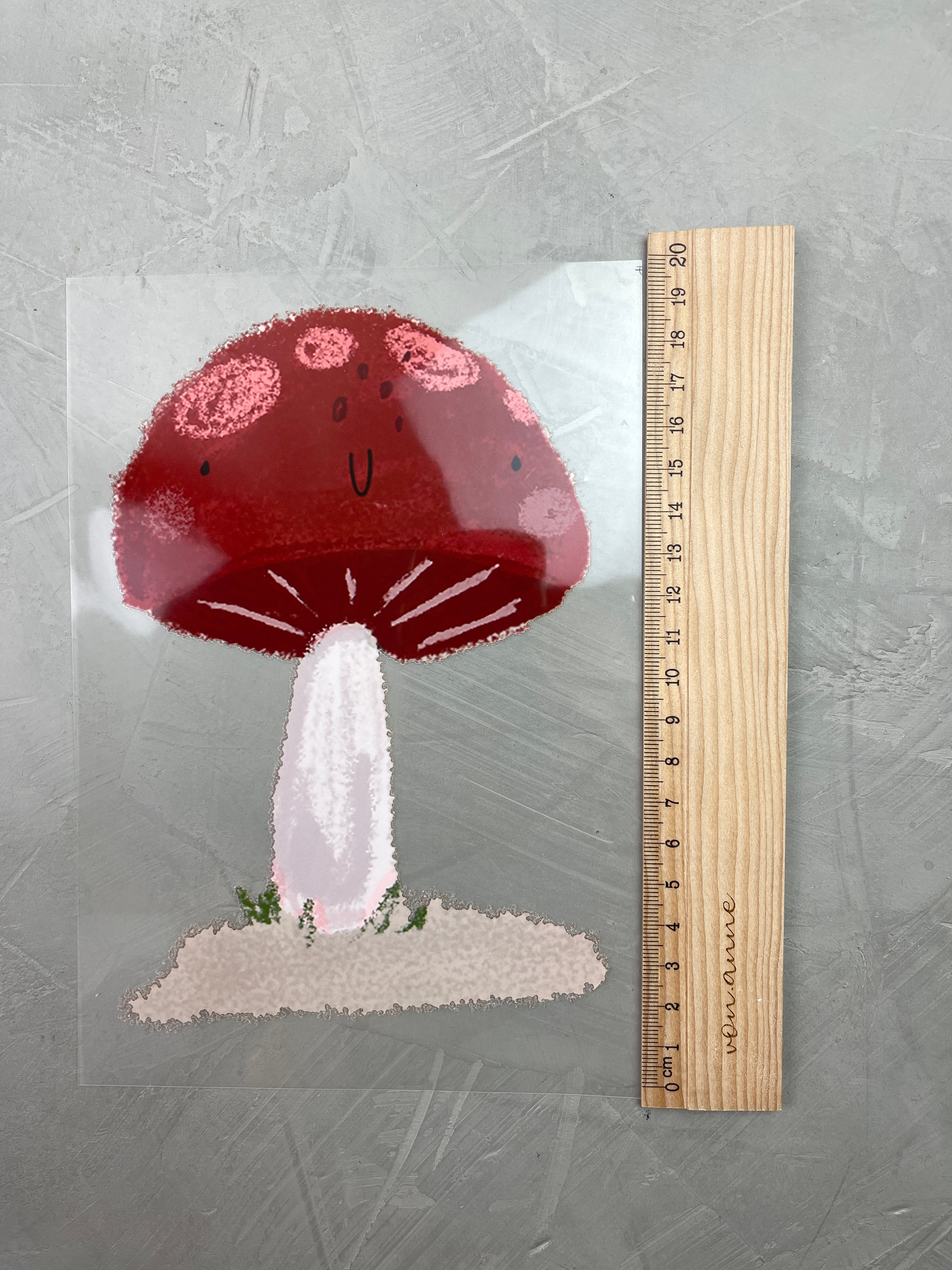 6. Backpapier anheben und alles abkühlen lassen. Die Trägerfolie sollte leicht ablösbar sein, falls sie zu viel am Motiv haftet nochmals für 30 Sekunden drüber bügeln