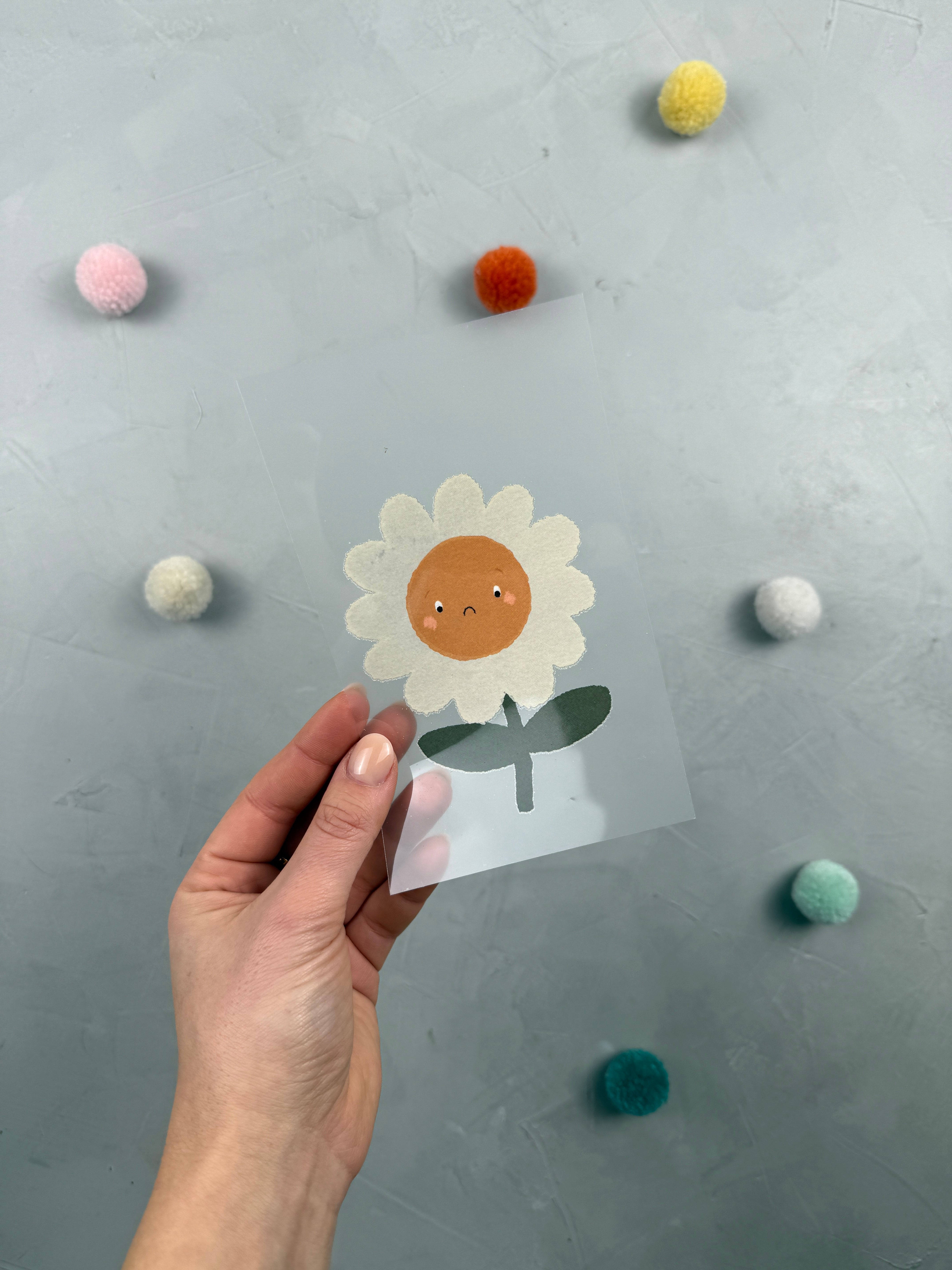 - Hintere Folie vom Sticker abziehen, sodass das Motiv zu dir zeigt.