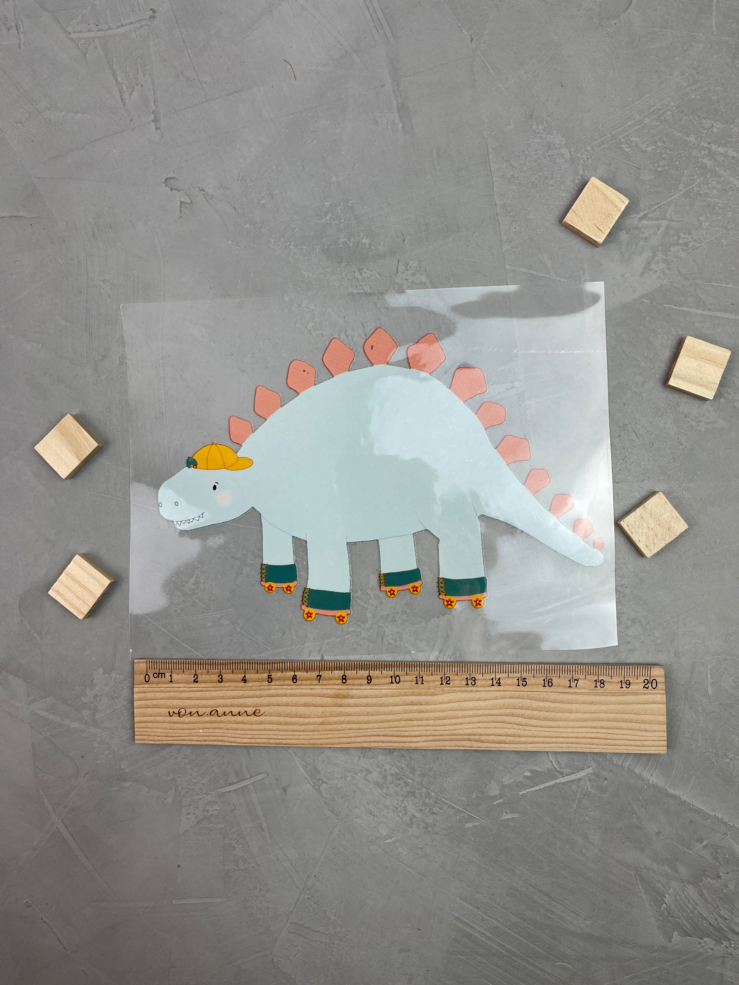 6. Backpapier anheben und alles leicht abkühlen lassen. Die Trägerfolie sollte leicht ablösbar sein, falls sie zu viel am Motiv haftet nochmals für 30 Sekunden drüber bügeln