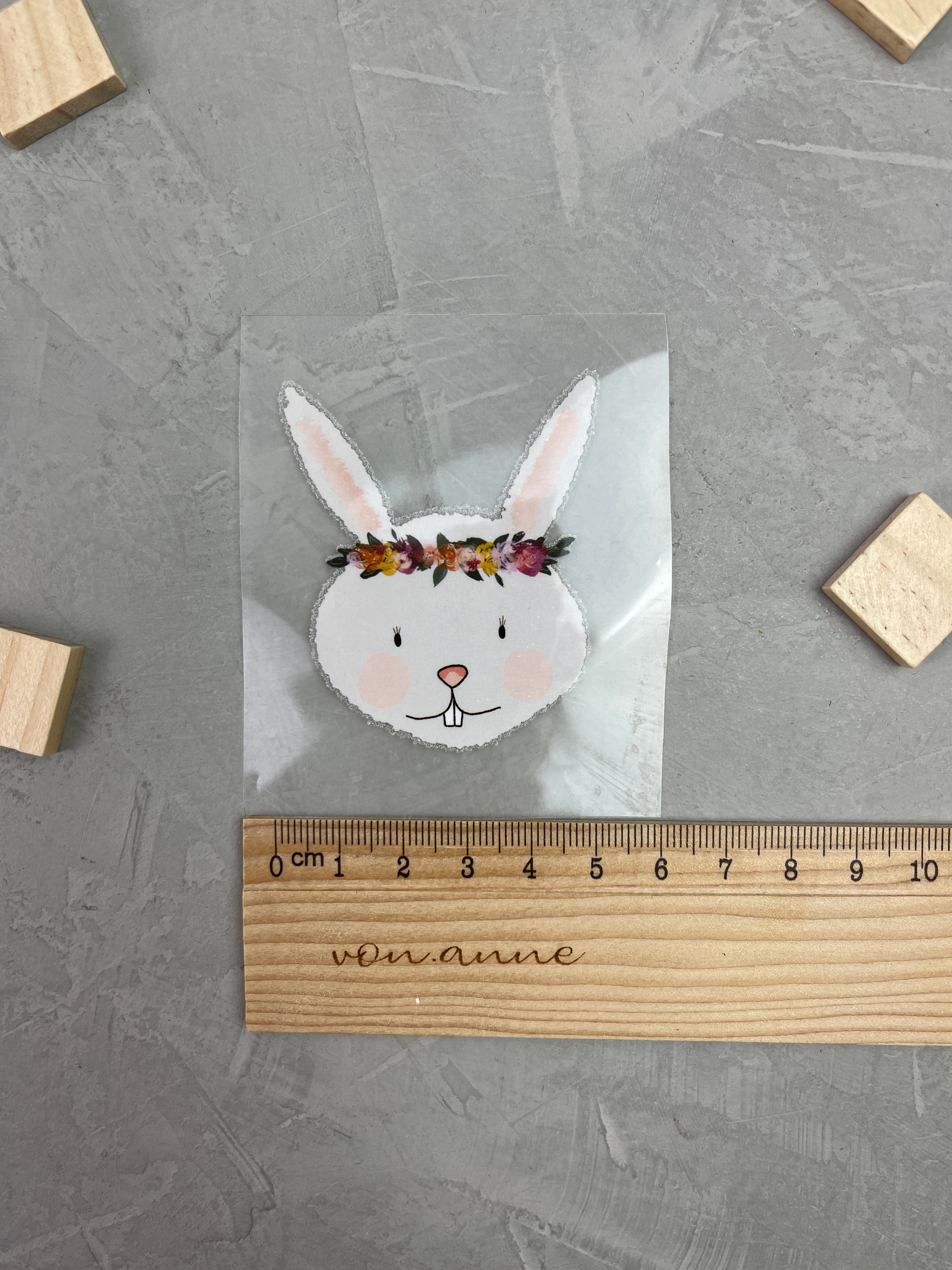 kleines Bügelbild - die Hasen-WG (Blumenkranz)