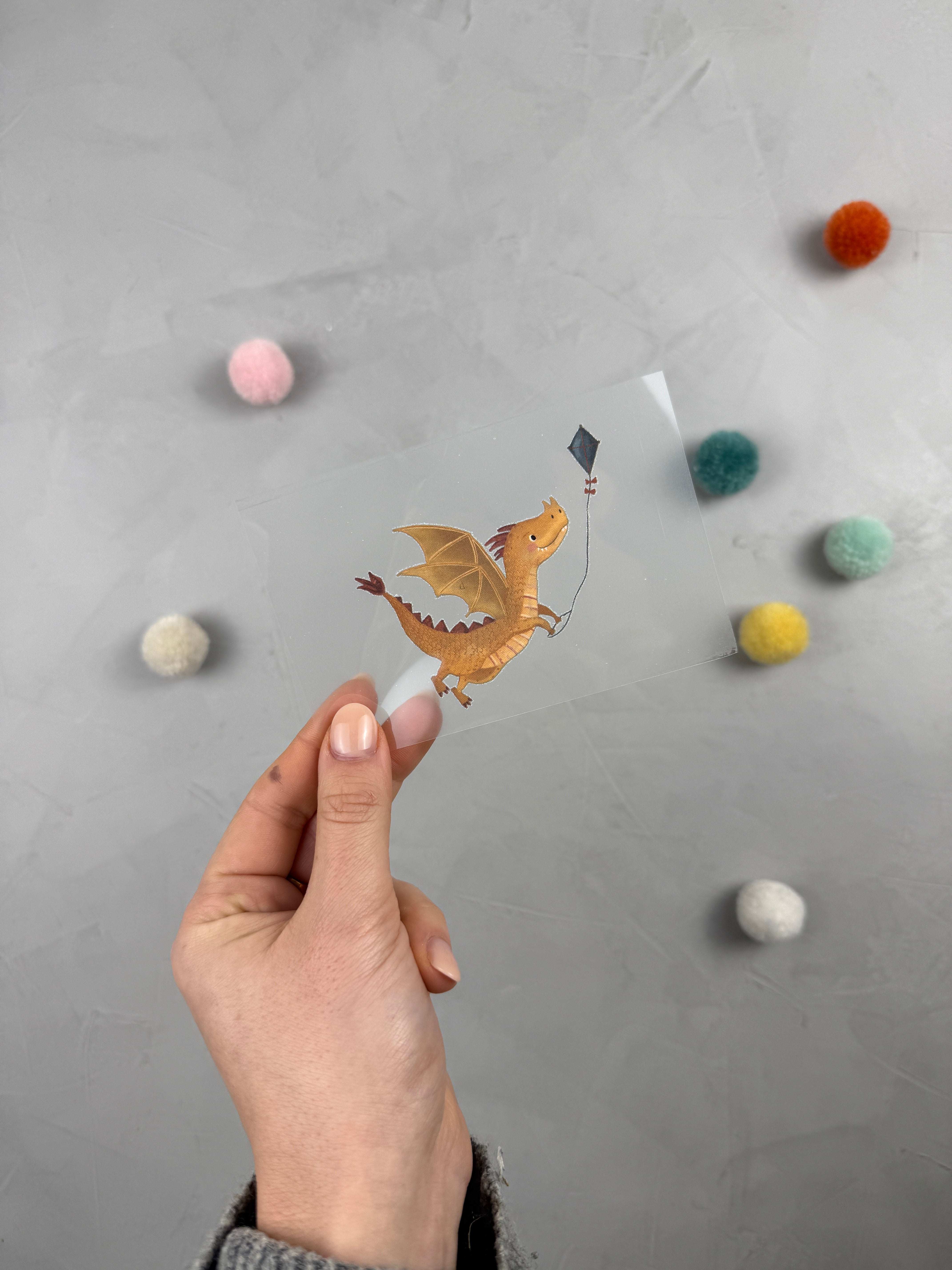 - Hintere Folie vom Sticker abziehen, sodass das Motiv zu dir zeigt.