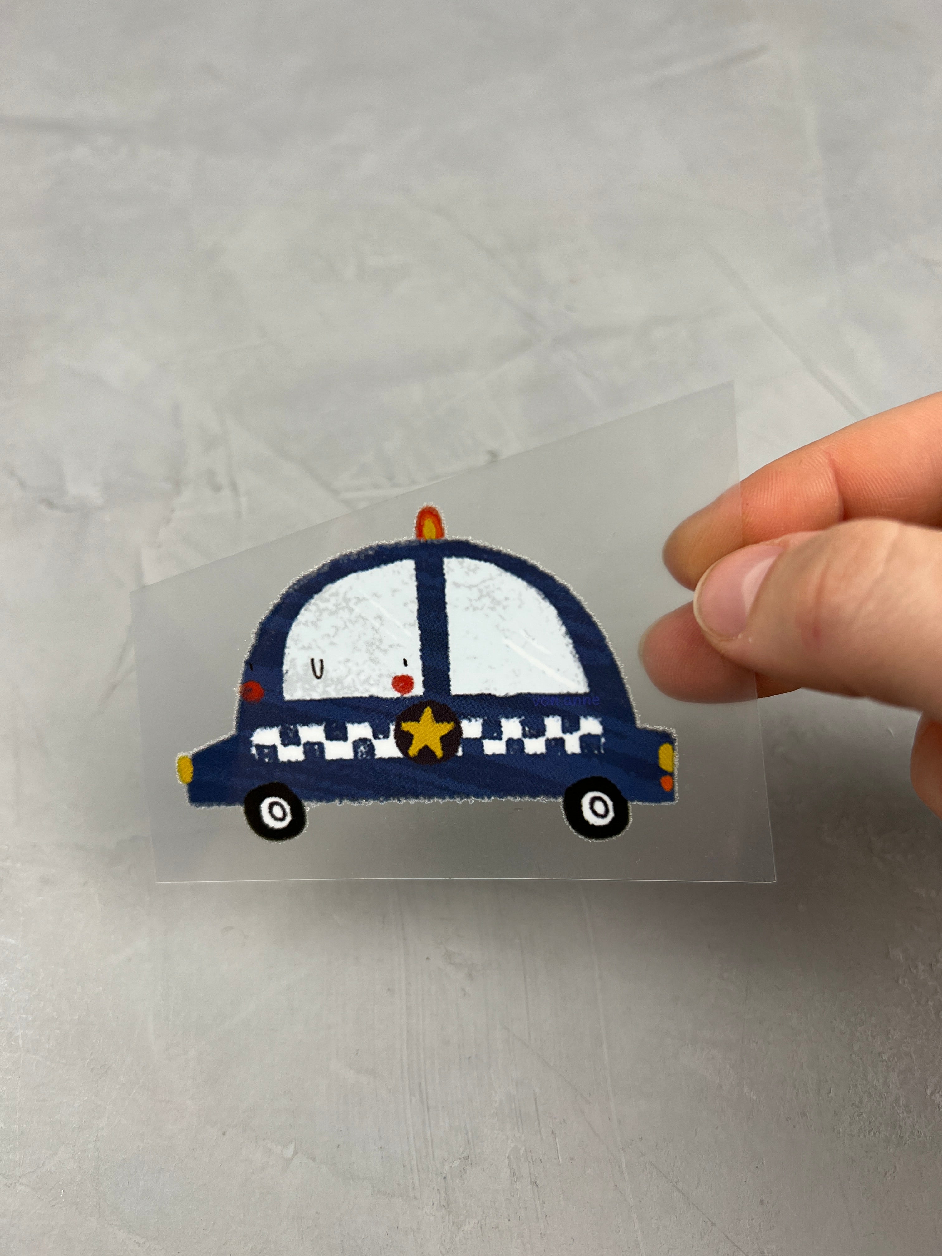 3. Hintere Folie vom Sticker abziehen, sodass das Motiv zu dir zeigt.