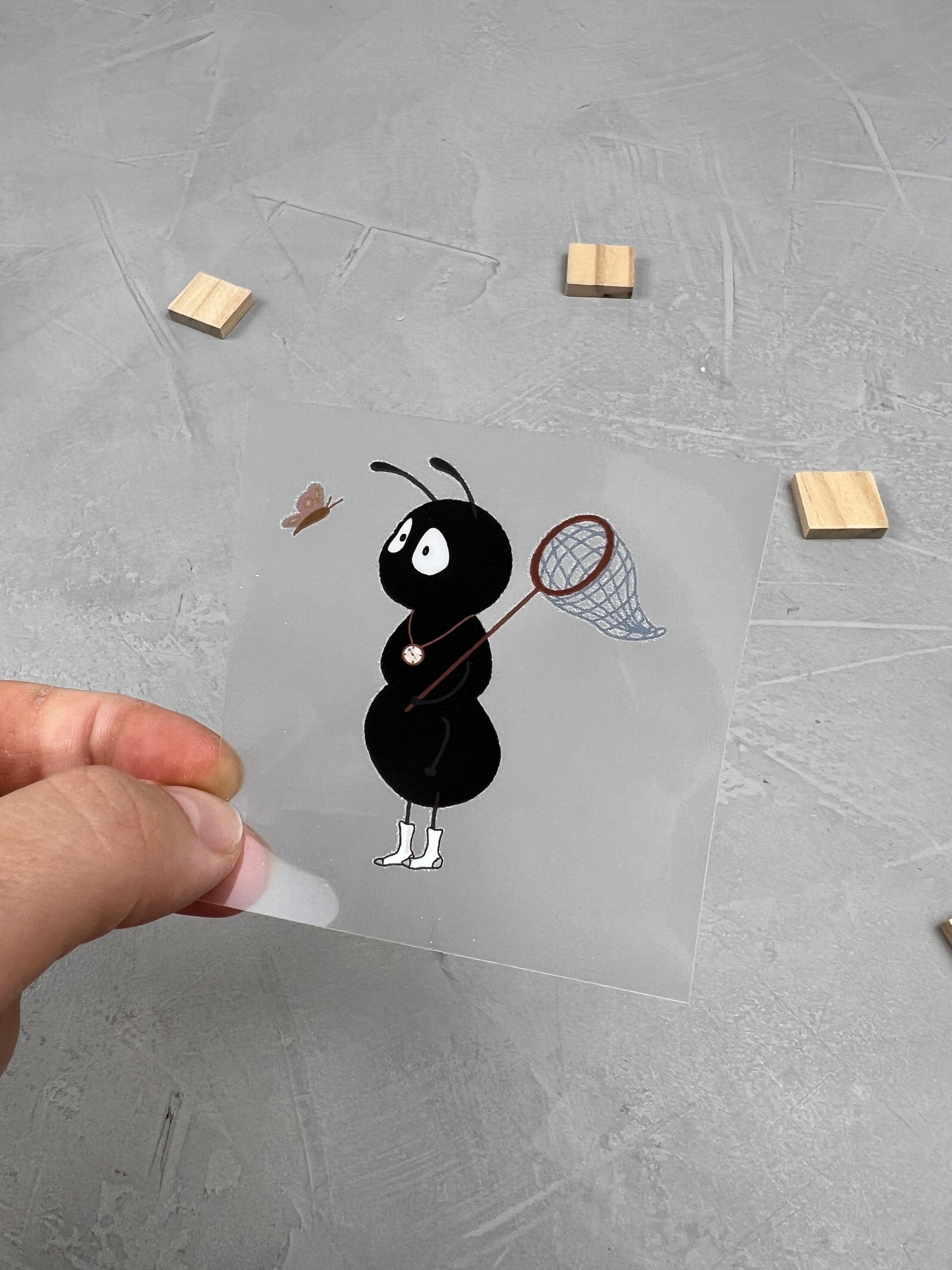 3. Hintere Folie vom Sticker abziehen, sodass das Motiv zu dir zeigt.