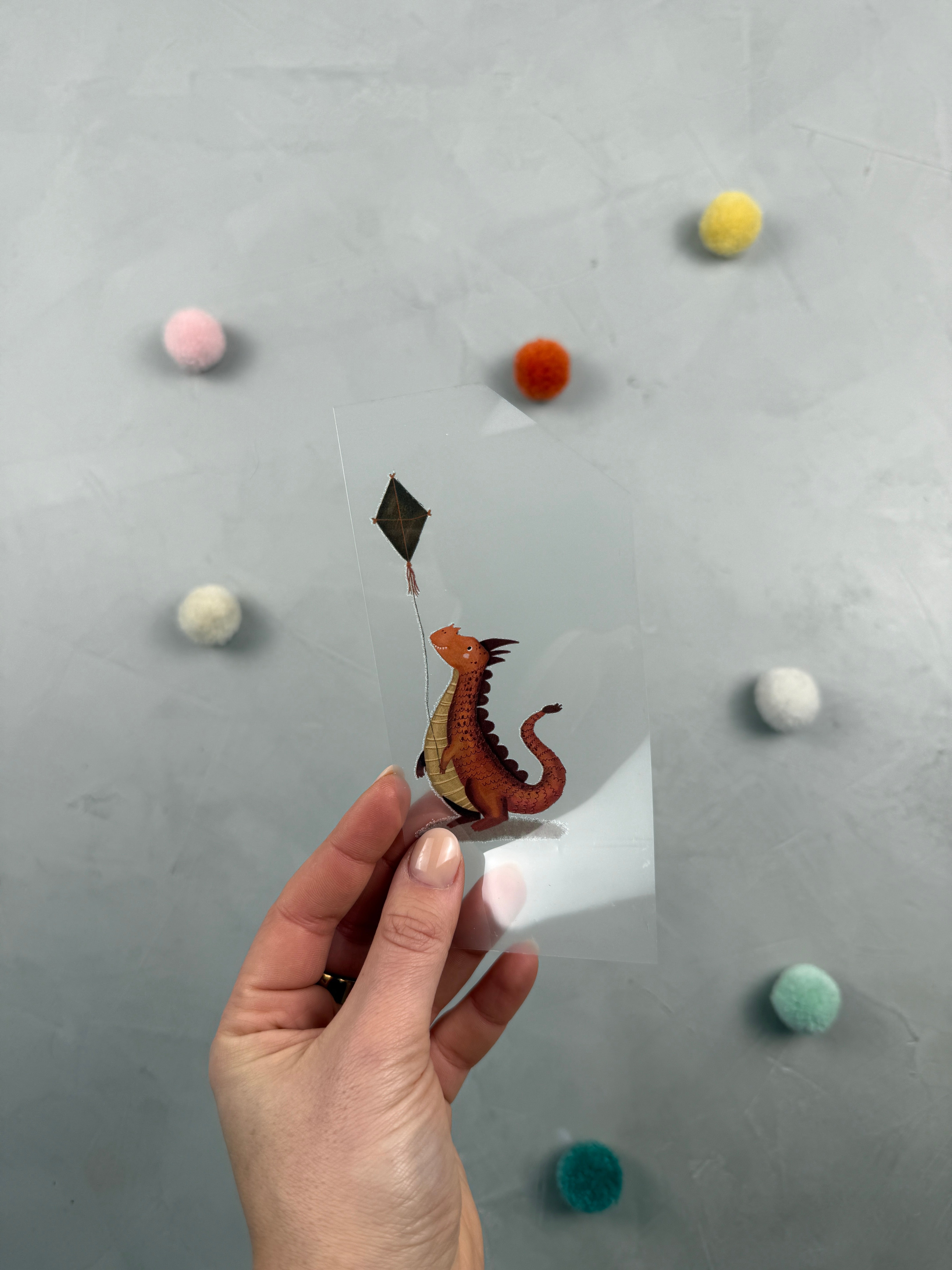 - Hintere Folie vom Sticker abziehen, sodass das Motiv zu dir zeigt.