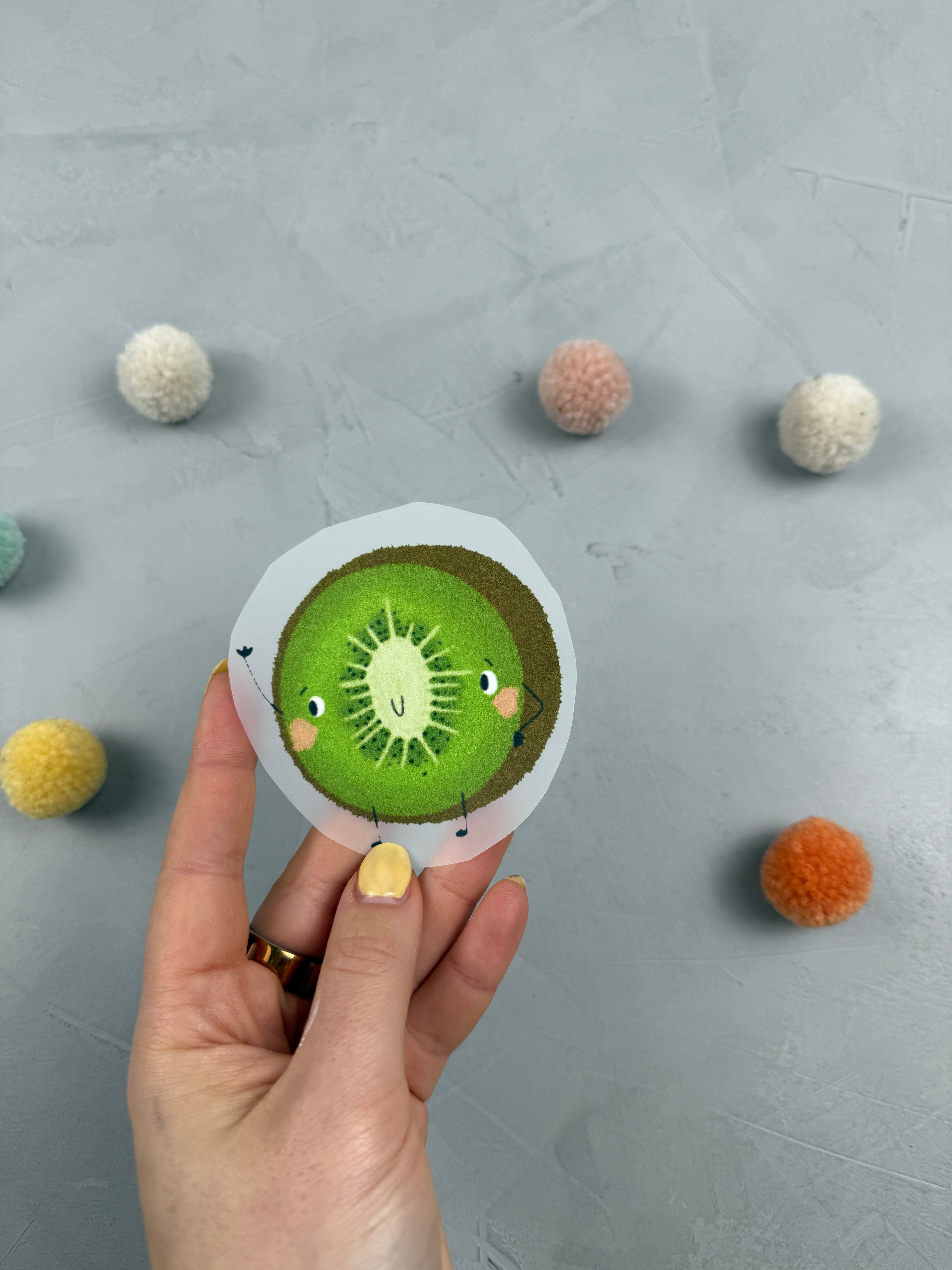 - Hintere Folie vom Sticker abziehen, sodass das Motiv zu dir zeigt.