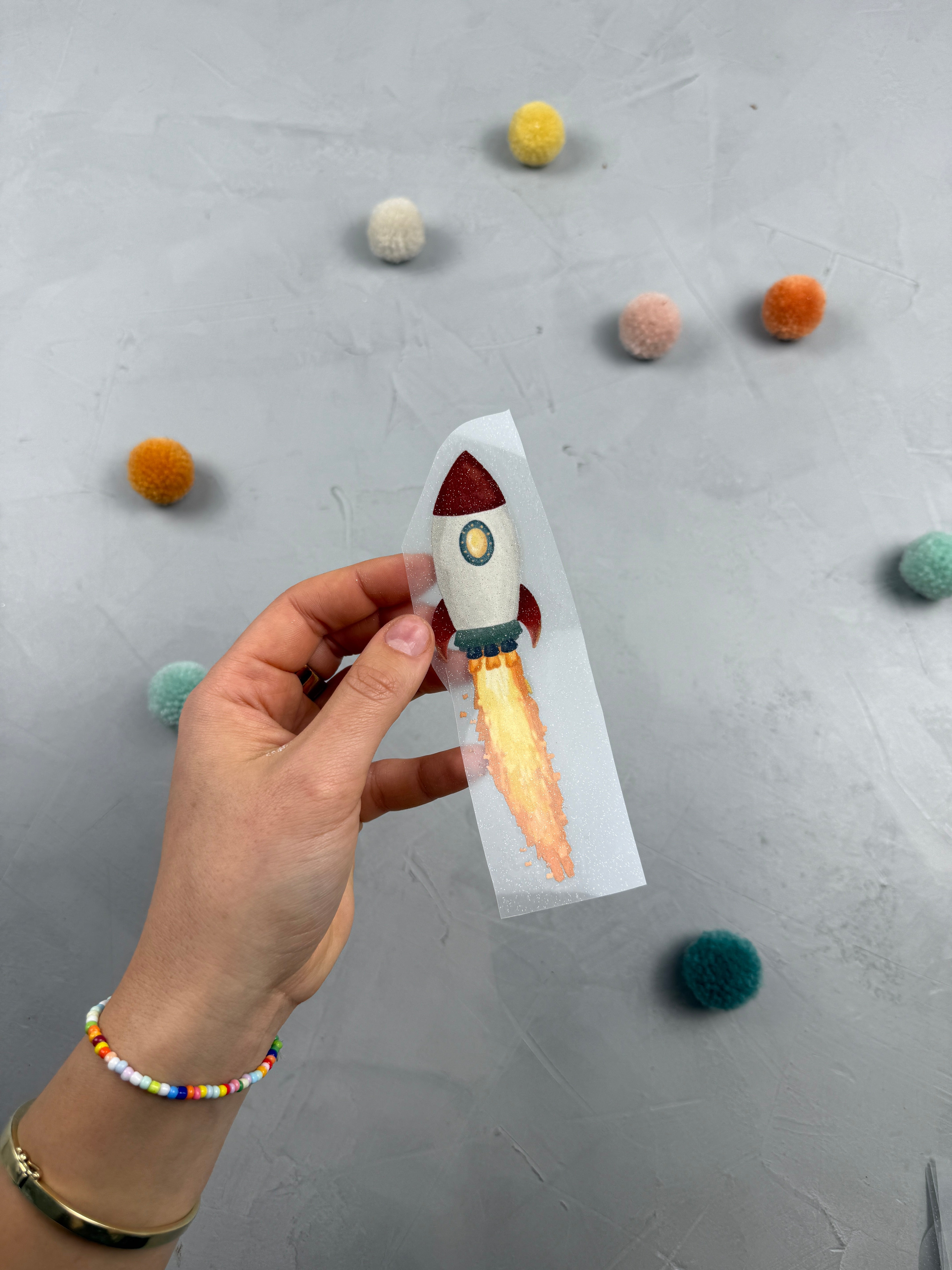 Mittleres Glitzerbügelbild - Raketenstart