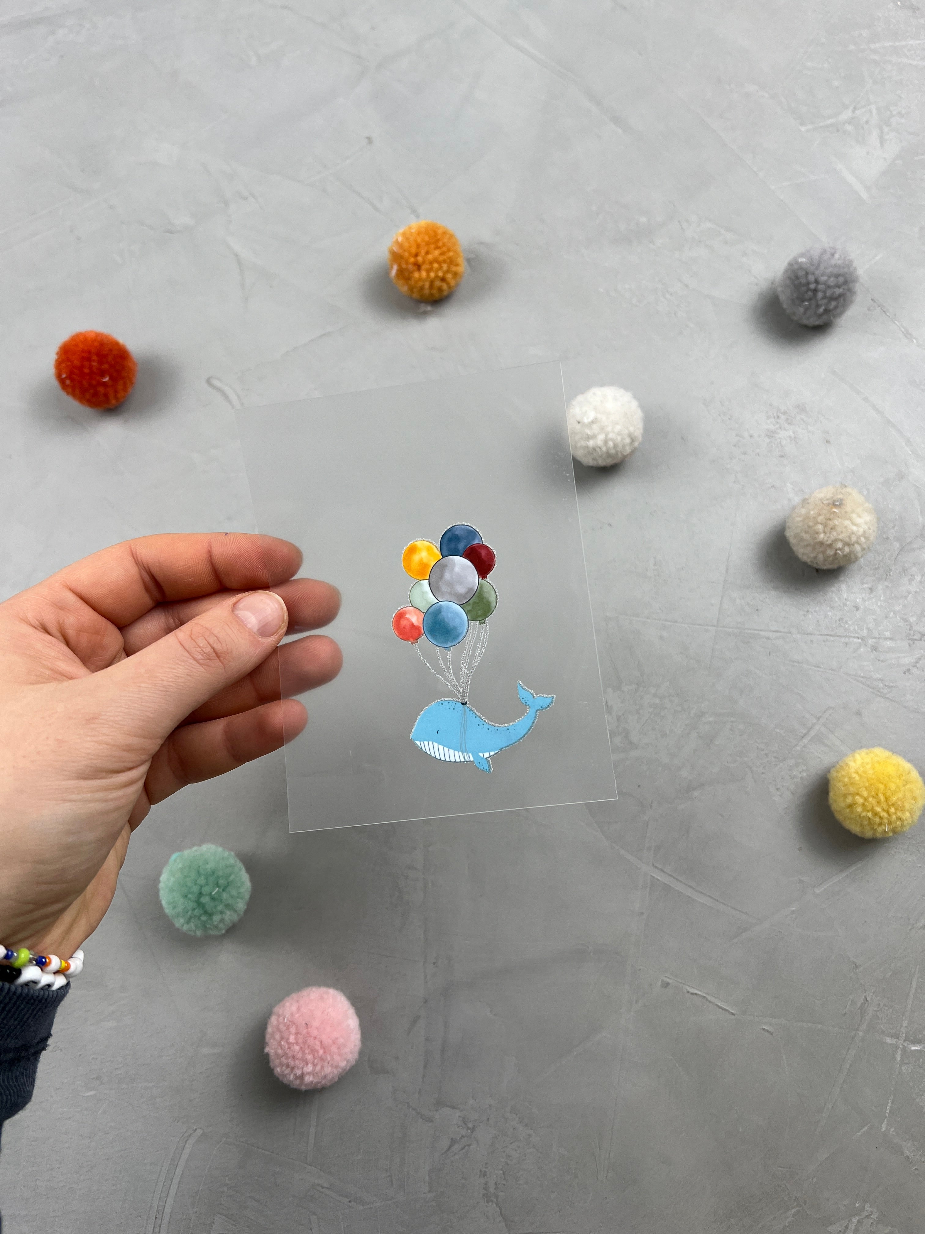 - Hintere Folie vom Sticker abziehen, sodass das Motiv zu dir zeigt.